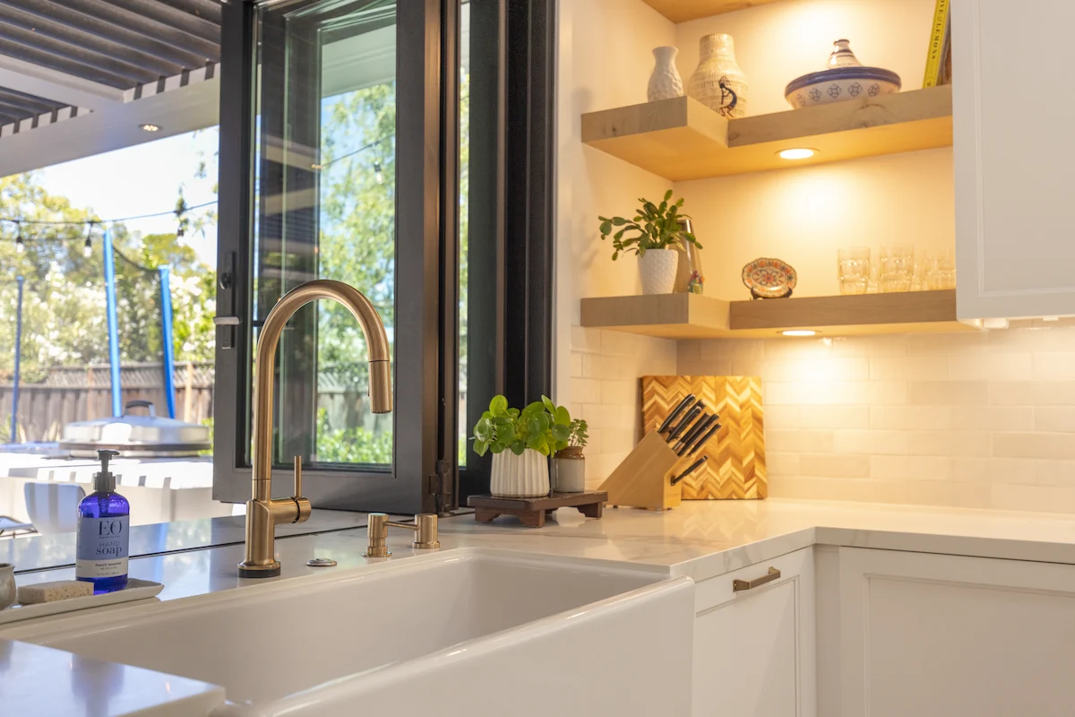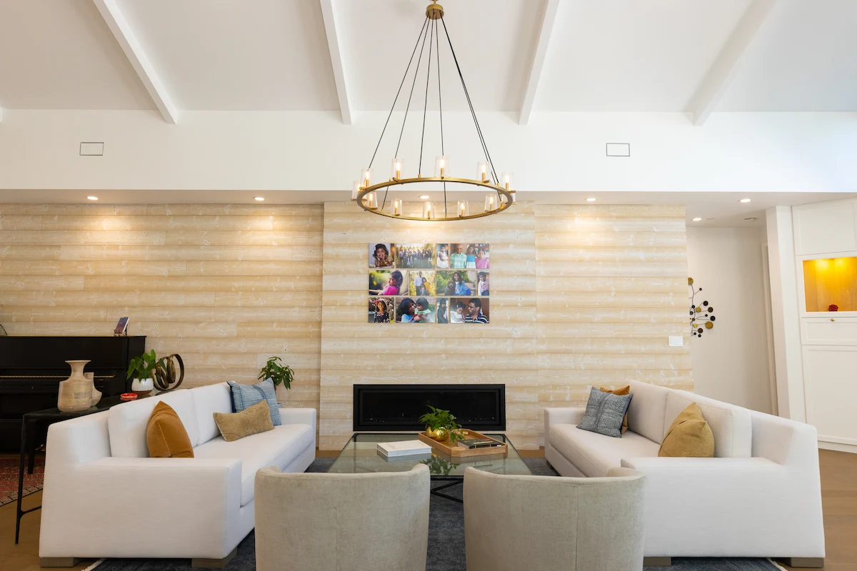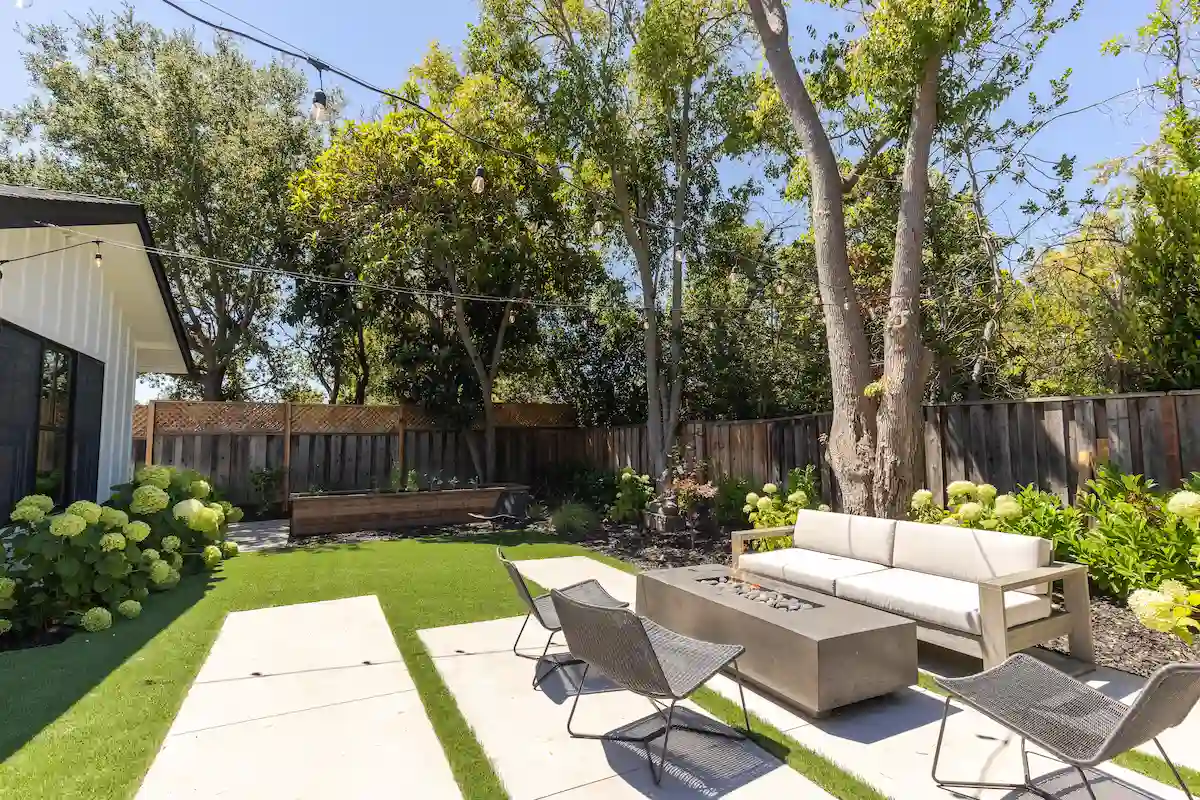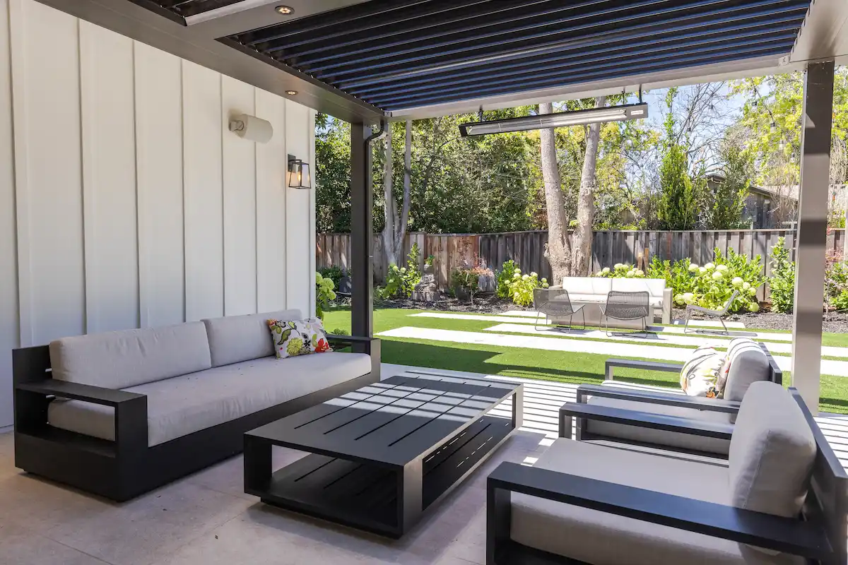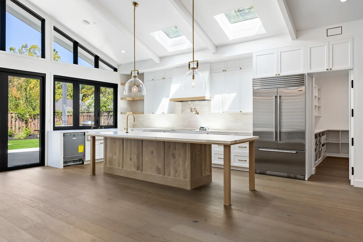 A seamless blend of indoor and outdoor living with its airy, open-concept design. Expansive windows and vaulted ceilings fill the space with natural light, while glass doors lead to a beautifully landscaped yard and grill station, perfect for gatherings. Modern finishes and thoughtful touches create a warm, inviting atmosphere throughout.