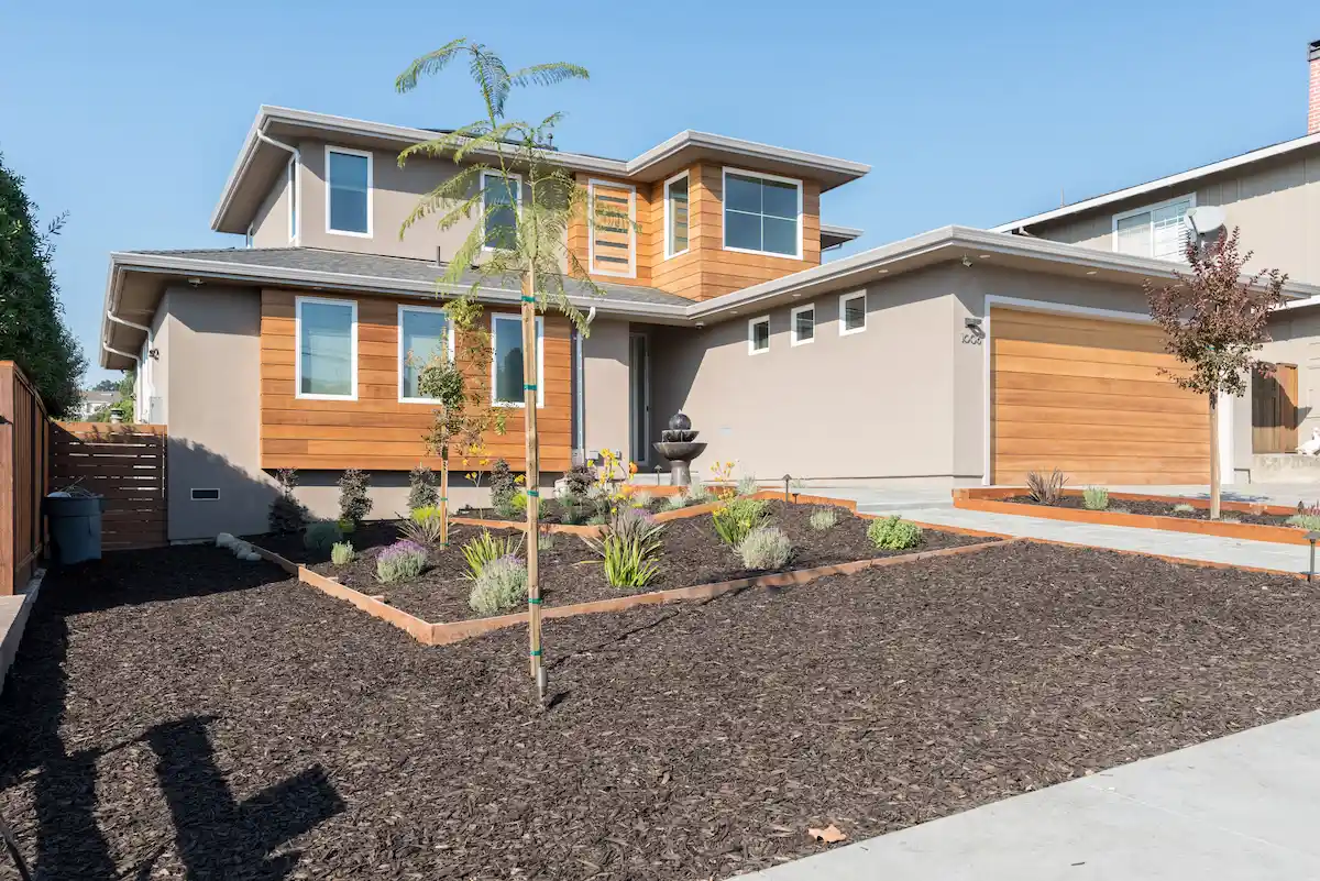 This new build in Belmont stands out with its warm exterior, light wood accents, and inviting design. Inside, the open kitchen and dining area boast a spacious island with seating for four, while the backyard features a large patio, deck, and lush lawn—perfect for relaxing or entertaining.