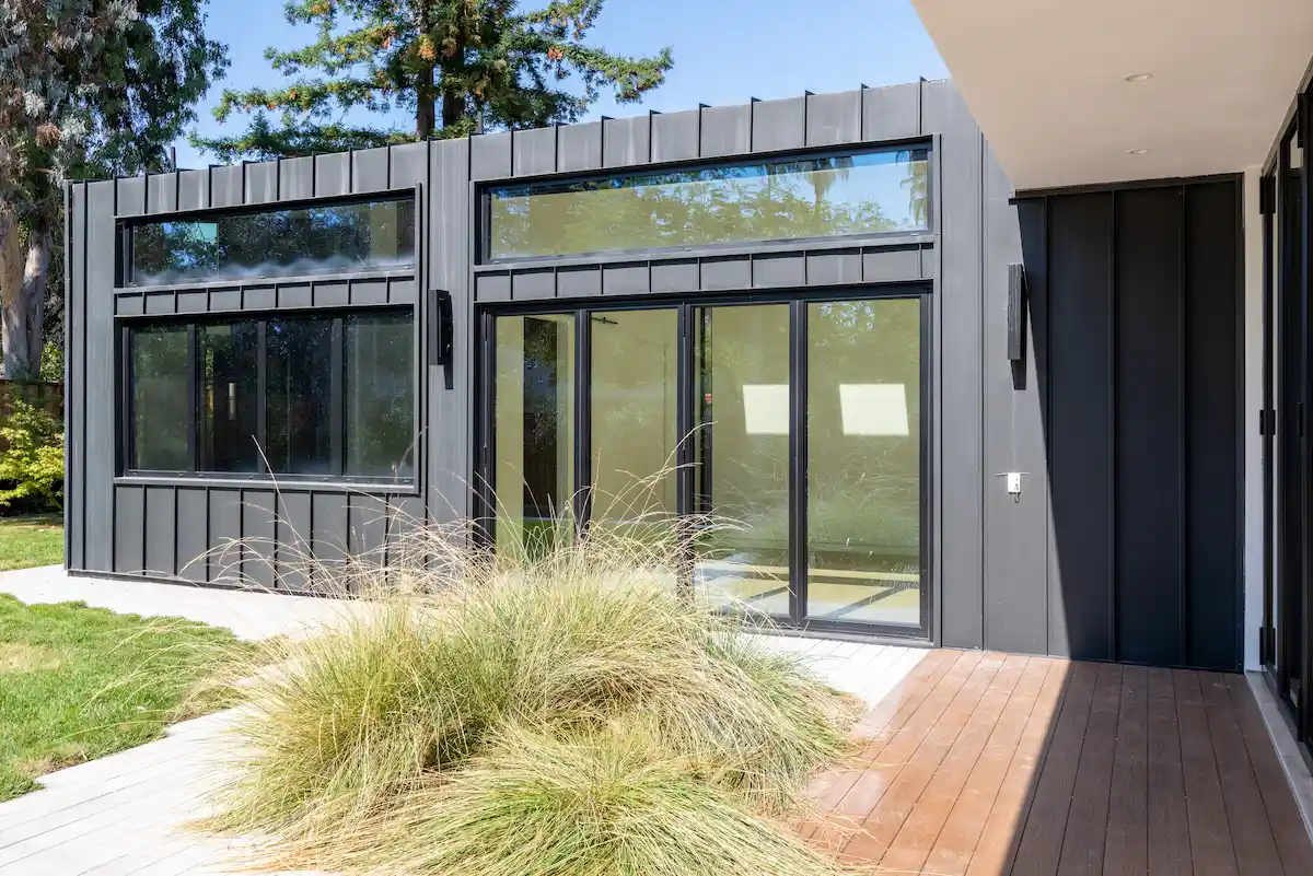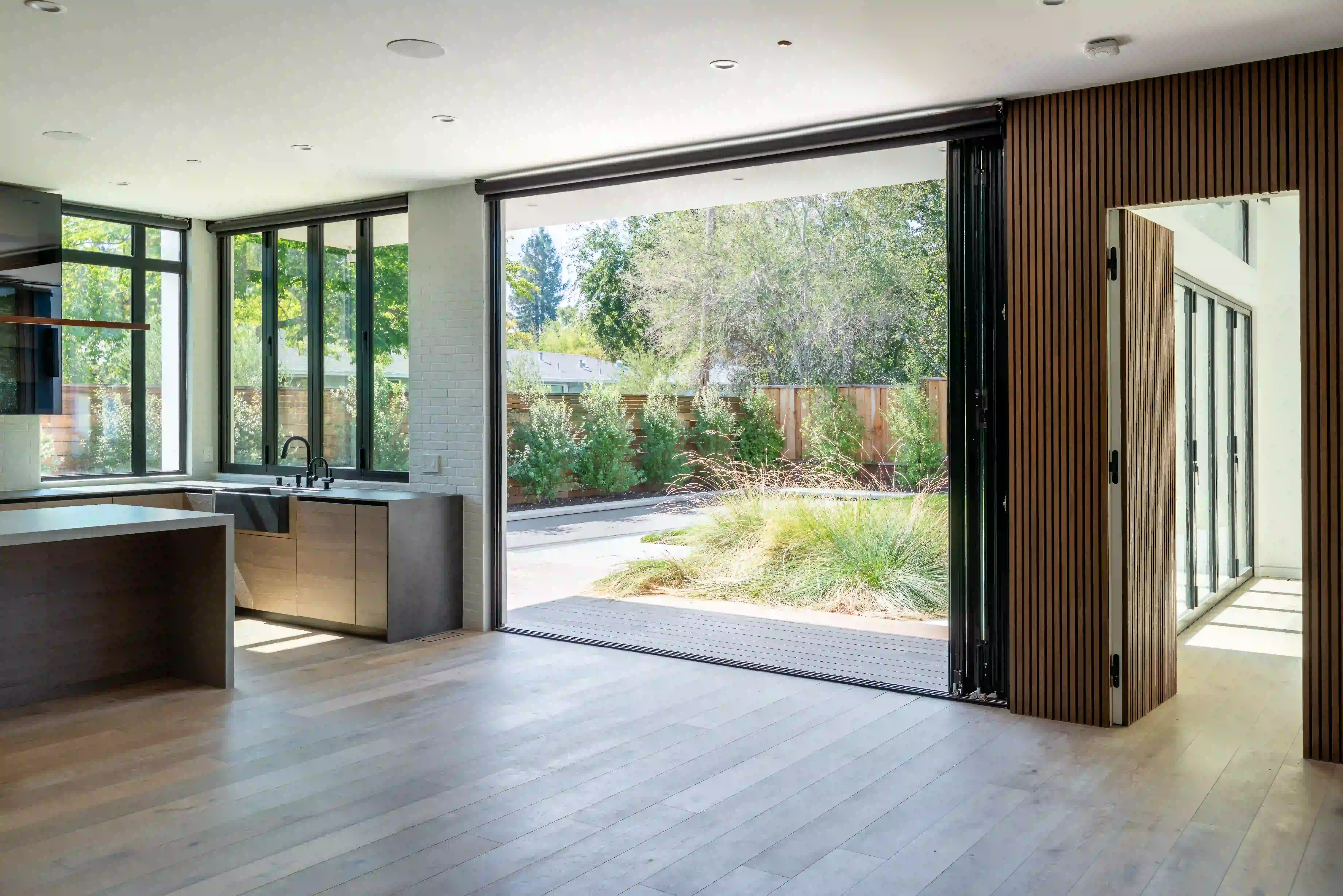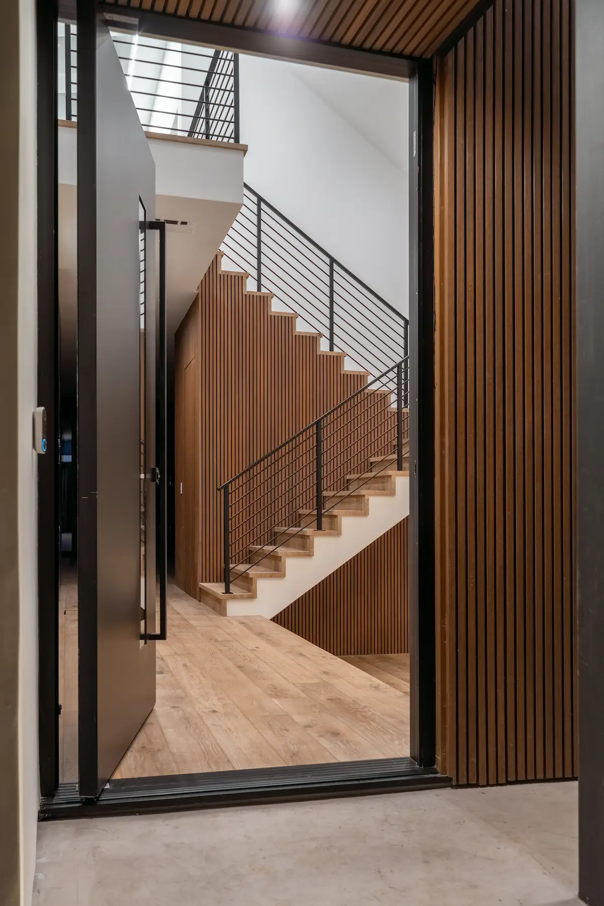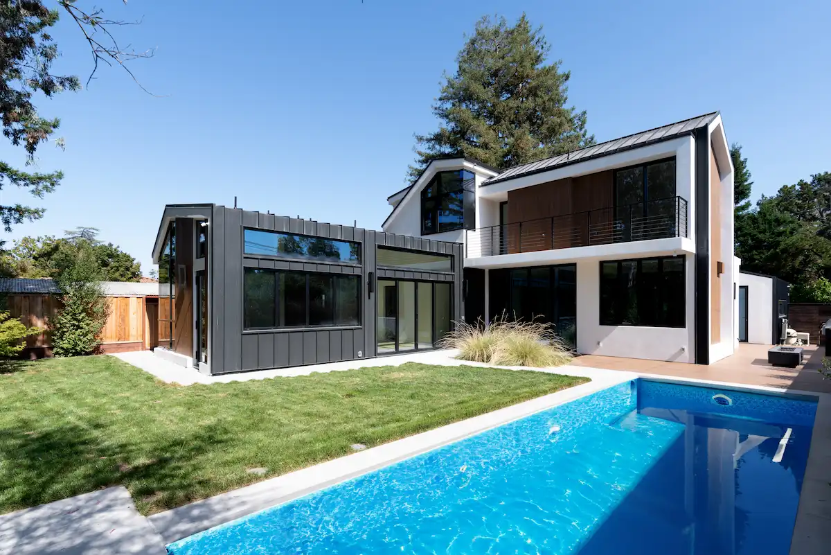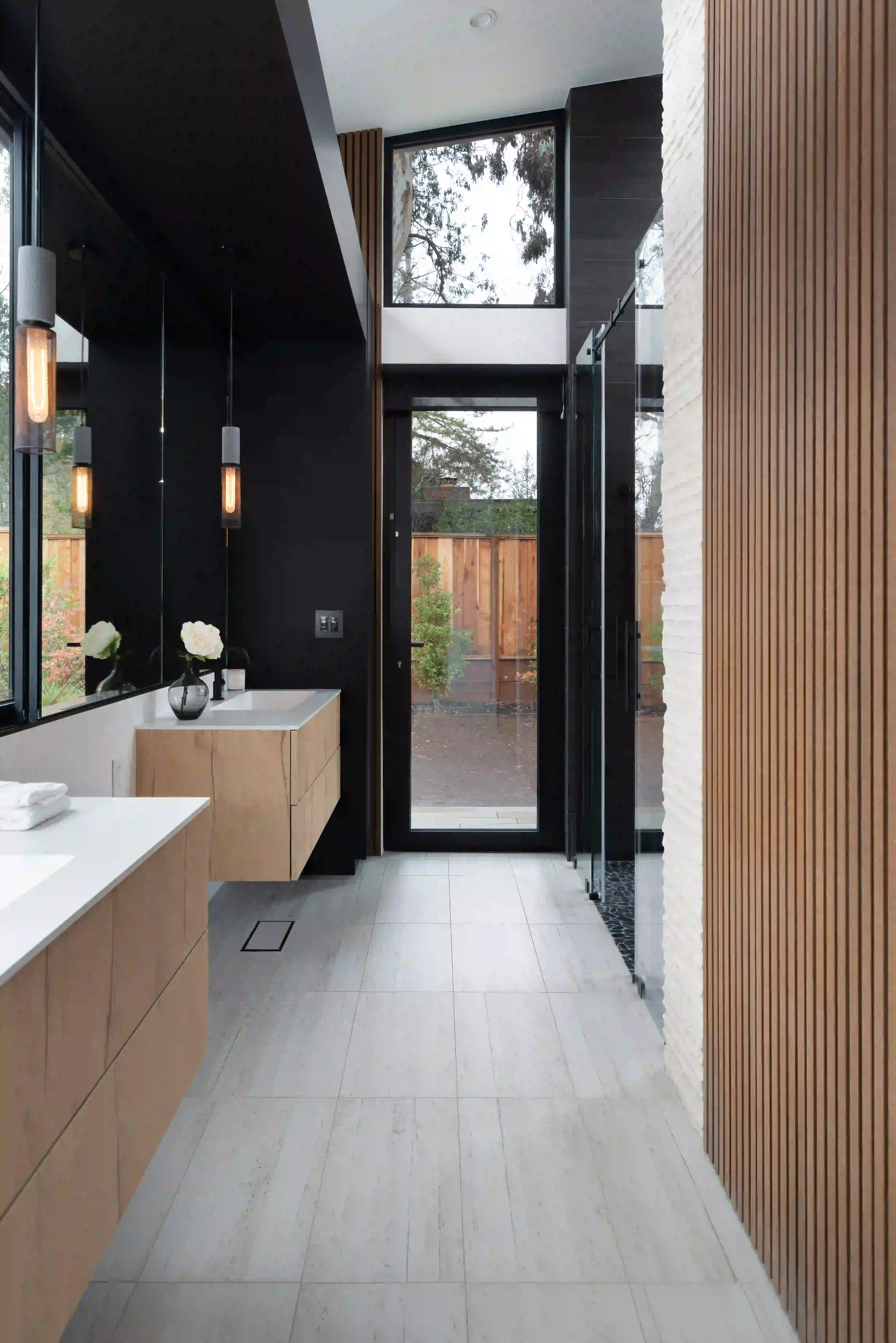 A modern retreat with clean, elegant design. Floor-to-ceiling windows flood the space with natural light, showcasing the open layout and seamless blend of whites, blacks, and wood accents. Highlights include a stunning kitchen, spacious bedrooms, and a walk-in closet designed to impress. The master bathroom features breathtaking views, while the outdoor spaces, complete with a pool and expansive driveway, elevate everyday living to exceptional.